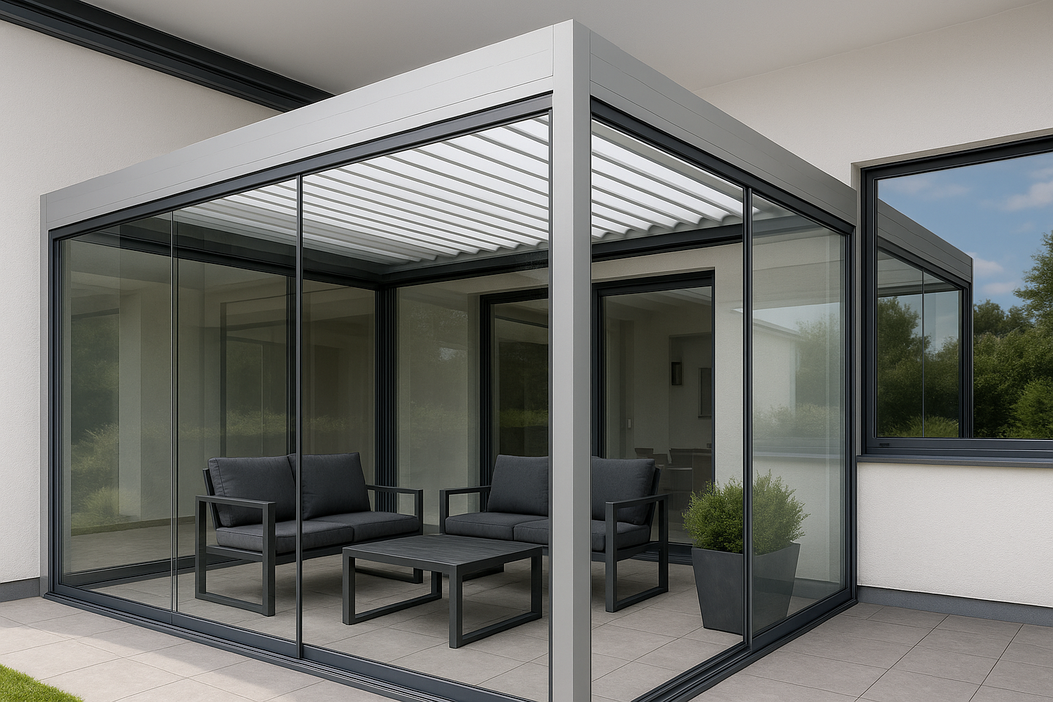 Este control bioclimático no solo aporta confort térmico inmediato, sino que se traduce en un ahorro significativo en el consumo energético de la vivienda o local. Además, muchas pérgolas bioclimáticas pueden complementarse con cerramientos verticales de cristal para crear espacios semi-cerrados que retienen mejor la temperatura interior. Esto permite prolongar la temporada de uso de terrazas y patios durante todo el año.